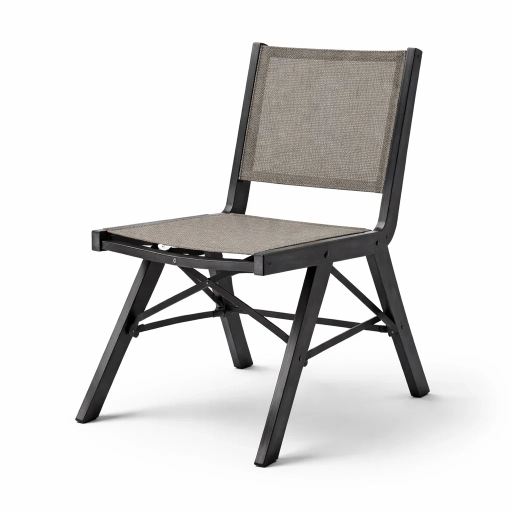 Chaise à manger pliante en métal noir et textilène marron