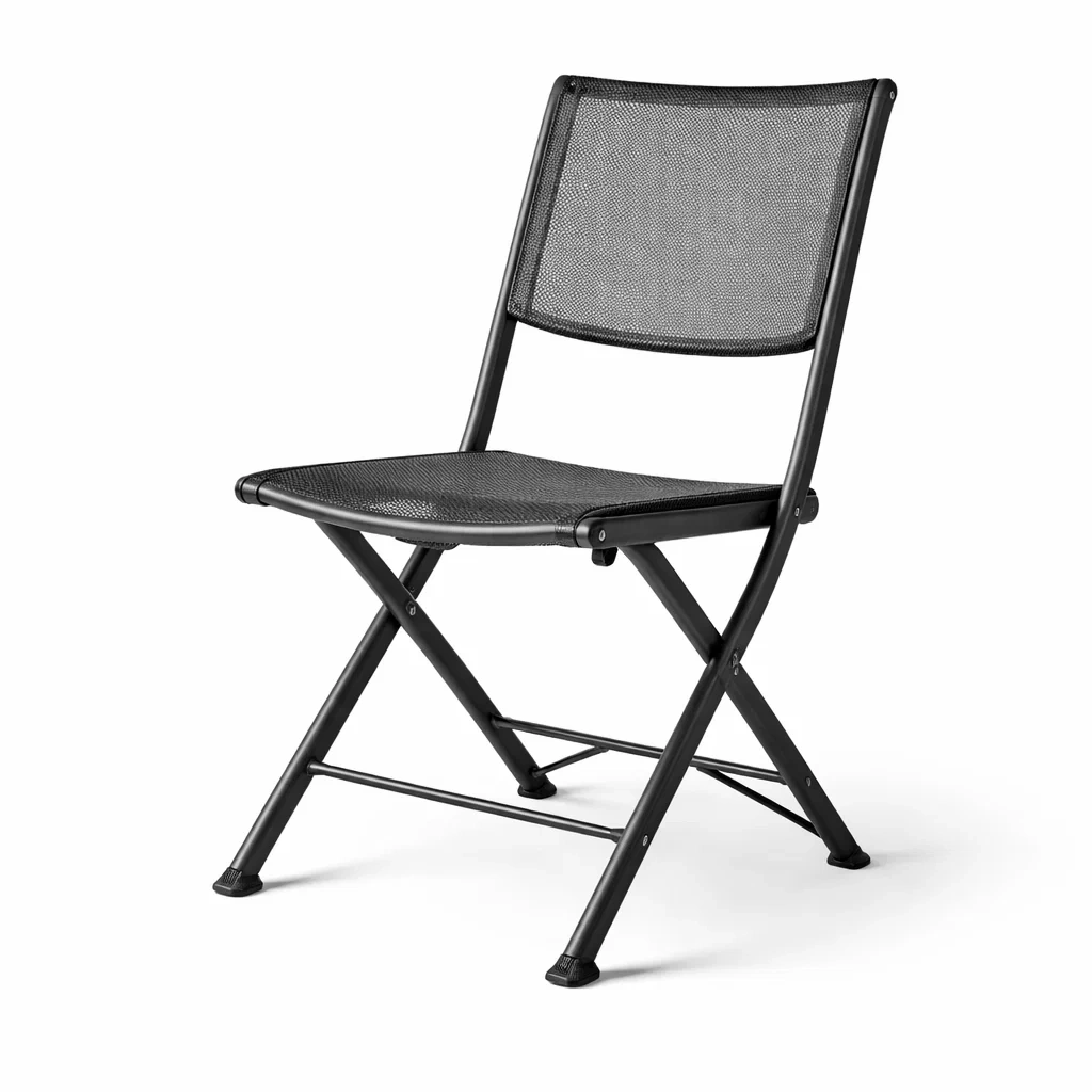 Chaise à manger pliante en acier avec siège en maille polyester noir
