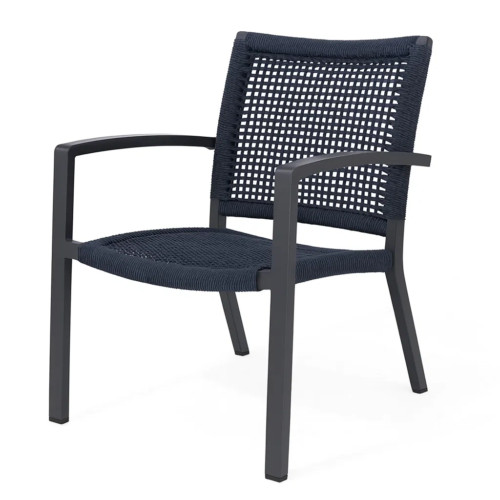 Fauteuil extérieur en corde polyester et acier noir 55x58x85 cm