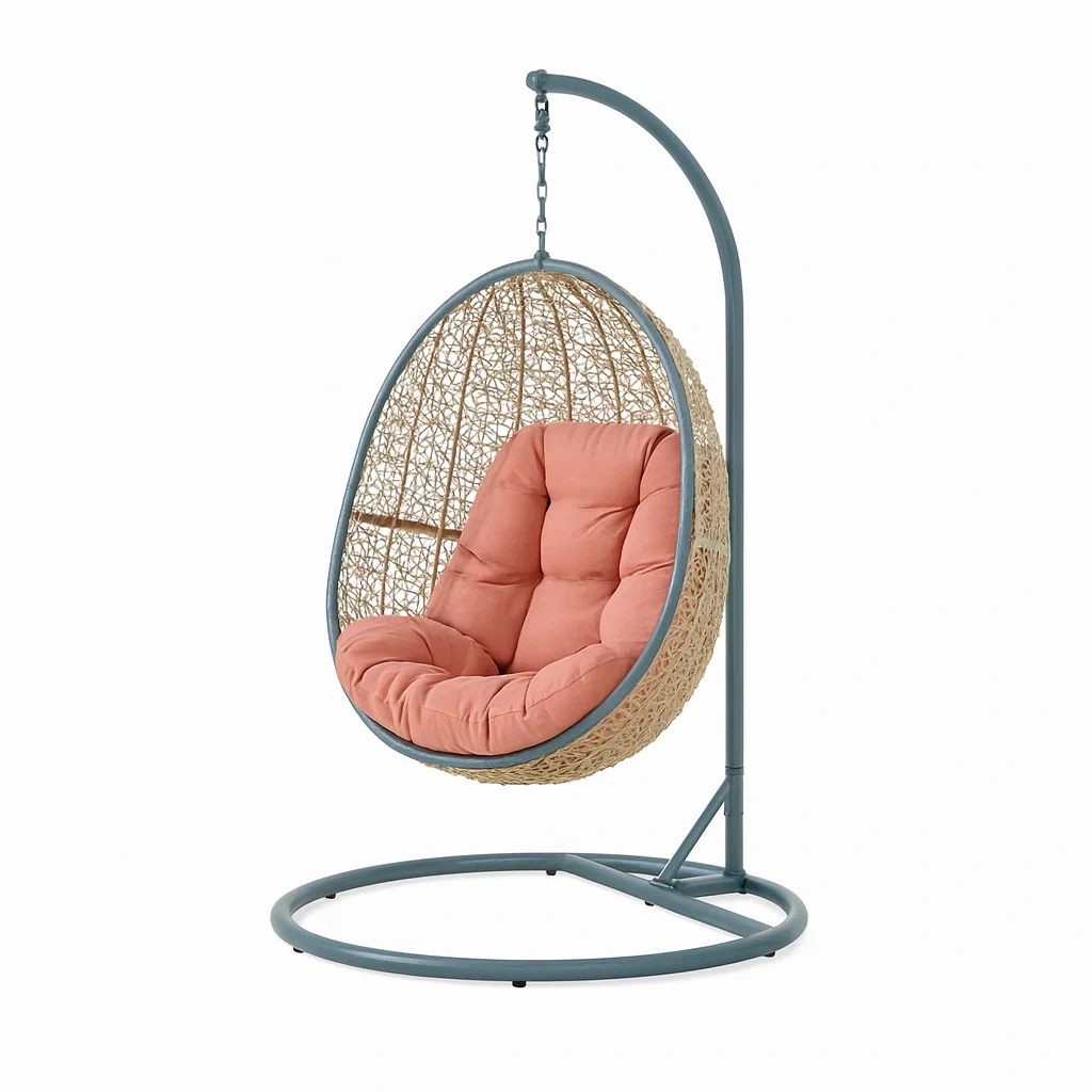 Matériaux : Structure en métal, rotin synthétique, coussins en tissu polyester